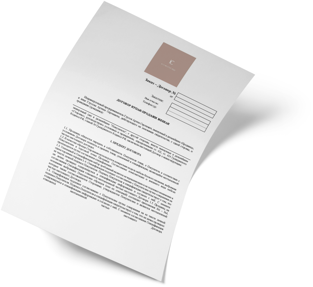 В момент подписания договора заказ уже отправляется в изготовление. Также уже в момент подписания договора согласовывается день доставки и день сборки изделия.