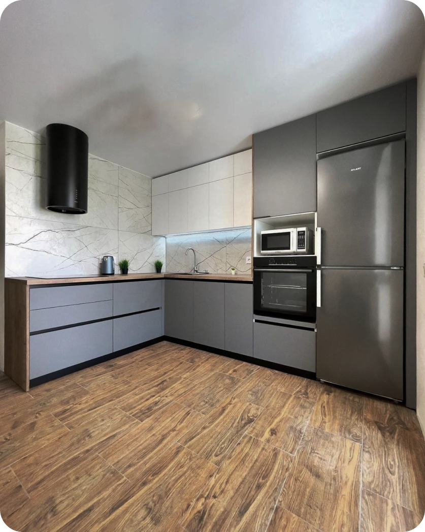 (газовой трубы, вытяжки, выводы под воду).Вы увидите будущую кухню максимально четко в специальной программе 3D моделирования